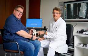 Nachdem eine konservative Behandlung und Physiotherapie für Klaus Schulte keine Besserung bewirkten, führte ihn eine Empfehlung aus seinem Freundes- und Bekanntenkreis ins St. Elisabeth-Hospital. Dort kam er im September 2023 zeitnah zu seiner notwendigen Knieoperation. „Wir konnten Herrn Schulte durch den Einsatz eines künstlichen Kniegelenks helfen, wodurch er nach einer Reha wieder schmerzfrei laufen konnte“, berichtet Michael Metz. Im Anschluss, eine Woche nach der Operation, standen für den Oberhausener insgesamt drei Wochen Rehabilitation auf dem Programm, um sich an das neue Kniegelenk zu gewöhnen und Bewegungsabläufe zu trainieren. „Durch die ausgeprägte Arthrose dauerte es etwa ein dreiviertel Jahr, bis das Knie im Alltag wieder ausreichend belastbar war“, berichtet Schulte.