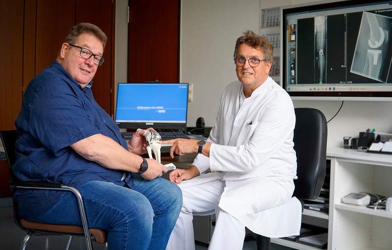 Bewegungseinschränkungen zur Folge hatten. Wieder hieß die Diagnose von Oberarzt Michael Metz: Fortschreitende Arthrose. Er empfahl auch hier, wie auf der Gegenseite, einen künstlichen Kniegelenkersatz. Auch diesmal erfolgte die Operation in der Klinik für Orthopädie und Orthopädische Rheumatologie. „Man muss beide Arthrose-Erkrankungen losgelöst voneinander betrachten. Ein Patient, der in einem Knie eine solche Erkrankung hat, muss nicht zwangsläufig auch im anderen Knie das gleiche bekommen“, ordnet der Arzt ein. Daher sei eine differenzierte Betrachtung durch einen spezialisierten Facharzt immer angebracht.