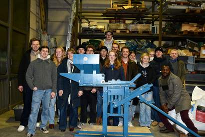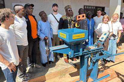 In Zusammenarbeit mit der Metallbaufirma Jürgens GmbH aus Meerbusch, entwickelten der Architekturstudent Lenny Reinhard (24) und der Bauingenieur Leonard Caspers (24) eine einfache und robuste Presse, die unabhängig von industrieller Infrastruktur funktioniert. Mit ihr können in Kamerun stabile Lehmsteine hergestellt werden – direkt vor Ort und mit lokalen Materialien.